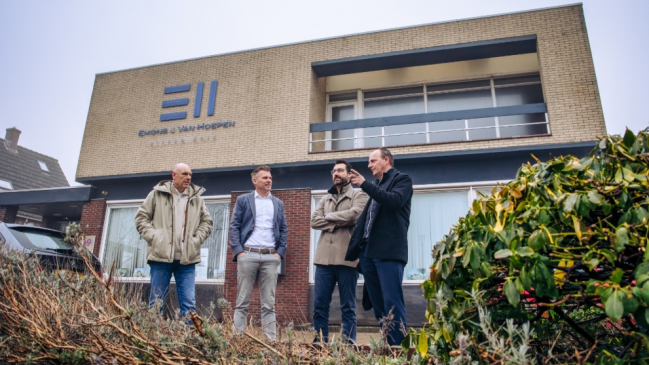 René den Haan van DEVOLP samen bij het oude bankgebouw in het centrum van ’s-Gravendeel.