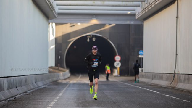 De Heinenoordtunnel is geen cadeautje. Met een helling van 5,3% en 27 hoogtemeters moet je blijven schakelen. Je loopt heen én terug door dezelfde tunnel. Het is pittig, het breekt je ritme en het vraagt constante focus. Tempo doseren, blijven werken en niet inzakken. Wie dit onder controle heeft, is klaar voor alles wat daarna nog komt — inclusief die 42,195 kilometer over de Coolsingel.