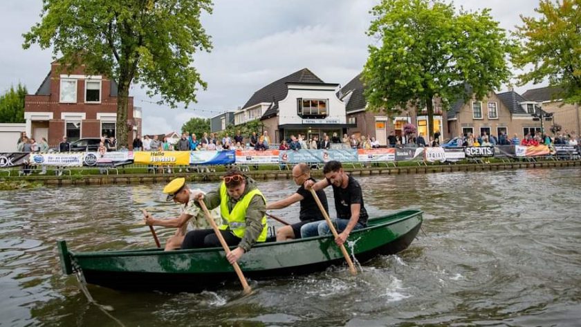 Verslaggever Kees Aardoom geeft in Hoeksche Waard Actueel uitleg over het schoproeien, een evenement tijdens de jaarlijkse feestweek in ‘s-Gravendeel