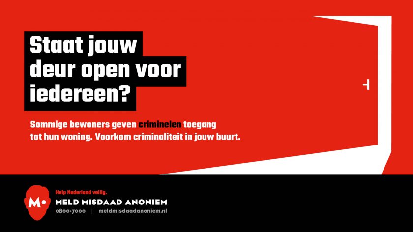 `Staat jouw deur open voor iedereen?´ Onder die noemer starten gemeente Hoeksche Waard, woningcorporatie HW Wonen en Meld Misdaad Anoniem (M.) op 29 mei een campagne tegen misstanden in huurwoningen. De woningen worden soms misbruikt door criminelen om wapens en cash op te slaan, te dealen, drugs te versnijden of voor illegale prostitutie. Ze krijgen toegang doordat bewoners een kamer of ruimte afstaan. De campagne vergroot het bewustzijn van huurders, brengt signalen onder de aandacht en verlaagt de drempel om te melden. Meld Misdaad Anoniem richtte zich al eerder op…
